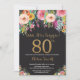 Floral Surprise 80th Birthday Invitation for Women. Watercolor Floral Flower. Black and Gold Glitter. Pink, Yellow, Orange, Purple Flower. Adult Birthday. For further customization, please click the "Customize it" button and use our design tool to modify this template.