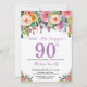 Floral Surprise 90th Birthday Invitation for Women. Fleur florale aquarelle. Rose, Jaune, Orange, Fleur Violette. Anniversaire adulte. 30ème 40ème 50ème 60ème 70ème 80ème 90ème 100ème 13ème 15ème 16ème 18ème 20ème 21ème N'importe quel âge. Pour plus de personnalisation, cliquez sur le bouton "Customiser" et utilisez notre outil de conception pour modifier ce modèle.