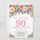 Floral Surprise 90th Birthday Invitation Pink