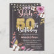 Rustic Wood Birthday Invitation Card with Blush Pink Cotton Floral, Gold Glitter Numbers & String Lights
