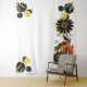 This tapestry design showcases a captivating blend of black daisies, set against a delicate background. A trio of vibrant orange and yellow tulips adds a burst of colour, creating a dynamic contrast. The interplay of light and shadow brings depth and dimension to the floral elements, making this a striking piece for any room.