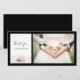 Send thoughts of appreciation and gratitude after your engagement party, bridal shower or nuptials with the pretty Floral Tea Cup with Pink Roses Wedding Thank You Photo Card. This elegant custom flowery wedding thank you photocard features a digitally painted botanical photograph of a floral tea cup and saucer with gold edges and pink rose flowers with white satin. Perfect inspo for a garden tea party or high tea marriage or event theme.