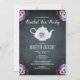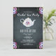 Bridal Shower Tea Party Invitation in vintage purple with pretty florals and teapot design.