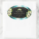 Matching a shimmering teal frame with a fine gold decor on a black background.