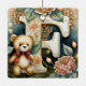 FLoral Teddy Bear letter F Ceramic Ornament