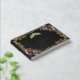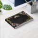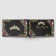 The Guest Book features an elegant black background embellished with a tiara, a frame of gold leaves, and a lovely floral bouquet. Designed as coordinate with the "Floral & Gold Leaves - Black & Pearl" Quinceanera collection. To change details, click «Personalize». To move the text or change the text size, font, or color click «Click to customize further»