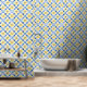 Floral Tile Mediterranean Inspired Blue Yellow Wallpaper