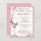 This is a bridal shower invitation with 'Floral Toast' artwork, consisting of a wine glass with wine splashing into it, trimmed with flowers. The card is available in numerous colour combinations. The reverse includes the future bride's name and large floral heart art.