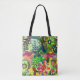 Beautiful quality tote bag in a heavy coated canvas. Shoulder strap is perfect length. Graphics are absolutely beautiful. The printing was great. The pink and black were perfect but the green didn't print as rich in color.