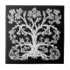 Floral Tree of Life in White on Black Tile