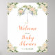 Beautiful baby shower poster with a white umbrella and peach and cream floral arrangements. Perfect for a baby shower. The words can be changed to suit your own details or requirements
