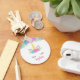 Cute unicorn keychain makes a wonderful gift for a girl. Design features a unicorn face and flowers in purple, pink and teal.