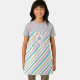 Unicorn apron with stripes in blue, pink, green, yellow, and purple. Add your child's name!