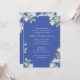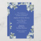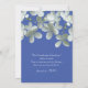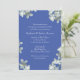 Invitations de renouvellement de voeux chrétiens dans joli périwinkle couleur pourpre-bleu avec fleurs blanches dans les coins et texte personnalisé blanc. Sur le dos figurent un verset ou une écriture biblique spéciale comme "Je connais les plans que j'ai pour vous" qui est l'échantillon.
