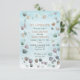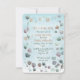 Cute baby boy shower invitation with a frame of watecolor flowers on a blue background