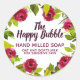 These beautiful handmade soap labels have watercolor painted flowers bordered around the text, ready to place on your soap packaging.