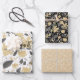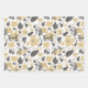 A simple and beautiful clematis vine floral watercolor pattern in a colour palette of golden yellow, grey, brown and white. A second paper with the same pattern on black and a third of a gold and white geometric pattern. A great combination for wrapping gifts for weddings, showers, birthdays, or DIY home decor projects! Design from Jenn Steffen for Studio Posies.