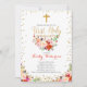Boy First Holy Communion Invitation, with gold confetti and beautiful blue floral.