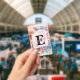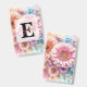 Floral watercolor monogram pink gerbera daisies badge