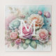Floral watercolor monogram pink roses flowers jigsaw puzzle