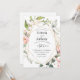 Beautiful soft pink, blush flowers with greenery creating a frame shape to outline this gorgeous invitation. Soft watercolors. So pretty for any season. Gold frame sets the tone for elegance.