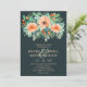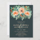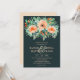 Elegant watercolor of flowers in shades of peach to orange trimmed with teal to jade green foliage on a dark teal background with your wedding ceremony details in chic pale peach lettering. A modern yet simple choice for any season wedding invitation. Change the background to any colour to match your wedding theme. MATCHING items in our collection.
