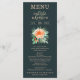 Elegant floral watercolor in shades of peach to orange and teal to jade green foliage with your wedding reception menu details in chic peach lettering with your names and wedding date at the top. Change the dark teal background to any colour to match your wedding theme. COORDINATING invitations, RSVP cards, reception cards, thank you note and more items available in our store to complete your invitation suite.