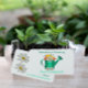 This horizontal business card features floral watering can custom-designed image.