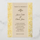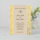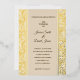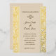 This wedding invitation is shown in a classic layout on a lovely gold foil floral background.