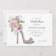 Bridal shower invitation features sparkly high heel shoe adorned with flowers. Can be used for any event by changing event text.