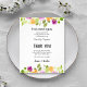 Affordable budget 4.5" x 5.6" lightweight paper flyers feature a border of petite purple and orange blossoms with green foliage. These place setting thank you notes are perfect to put on top of the plates at your wedding rehearsal dinner or wedding reception. MATCHING items in our store.