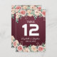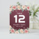 Vintage Watercolor Botanical Floral Burgundy Red Background Wedding Seating Place / Table Number / Escort Card Templates.