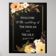 The welcome sign is usually displayed at the entrance of the wedding venue to greet guests and set the tone for the celebration. The poster can be customized to match the wedding theme, colours, and style, and may feature a photo of the happy couple to add a personal touch.