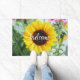 This custom doormat features an image of a colourful summer bouquet with the focus on a gorgeous little sunflower. "Welcome" is added in large, easy-to-read lettering. The mat measures 24" x 36", and it has a smooth felt front & nonslip latex back. It also has a reinforced edge to resist fraying, is both fade & mildew resistant, and cleans easily with a spray of water. Ideal for covered entryways such as porches, apartments, offices, condos, etc. Feel free to contact me through Zazzle if you have questions about this mat or would like help transferring this design to a different item. I'm happy to help to ensure the image and lettering fit correctly.