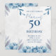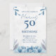 Floral White and Blue 50th Birthday Invitation