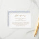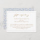 Chic and youthful. This lovely wedding gift registry card features all the detail at the front and a lovely dusty blue floral back with a chic set of trendy fonts in a warm golden colour.