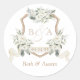 Floral White Elegant Greenery Crest Envelope Classic Round Sticker