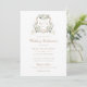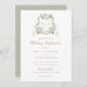 Floral White Greenery Monogram Crest Wedding Invitation. Watercolor White Flowers Sage Green Wedding Crest. Elegant Greenery Baby's Breath Wedding Invitation
