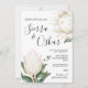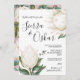 Make your wedding day truly special with this elegant invitation, featuring striking white protea flowers surrounded by lush greenery and delicate gum leaves. This design is perfect for an outdoor or native-inspired wedding, blending natural beauty with a sophisticated touch.