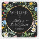 Floral Wildflower Boho Welcome Black Bridal Shower Square Sticker