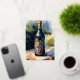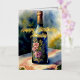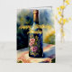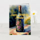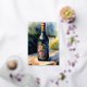 Pretty foil greeting card for wine lovers features AI generated still life with floral decorated wine bottle digital art and gold foil customizable text in modern script