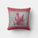Floral throw pillow in shades of reds and greys, with verse from Psalm 31:24 "Be strong, and let your heart take courage, all you who wait for the Lord!"