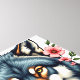 Features a wolf's head flanked by lovely florals.