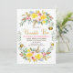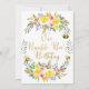 Sweet bumble bee themed birthday invitation for a little girl featuring a lovely mostly yellow floral wreath and three cute bumble bees. The design also includes a removable faux gold image heading.