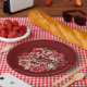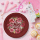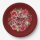 Happy Holidays in chic white lettering on a floral wreath, these red paper plates are available in two sizes.