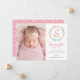 Announce your new little one in style with this beautiful, monogrammed birth announcement by Orabella Prints! White arrows decorate the back of the card, and the background colour can be customized, if desired.