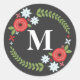 A sticker featuring an illustration of flowers and greenery. Personalize with initial at centre. Background is grey. Look for matching wedding invitations and more at Jill's Paperie.