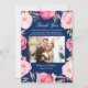 Floral Wreath Navy Blue Photo Wedding Thank You
