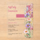 A clear background, with a large pink cross decorated with pink and purple flowers. Personalize and add the name and details details.