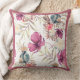 Florals Raspberry, Slate Blue with Greenery Throw Pillow
